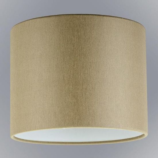 Abażur w kształcie walca, wykonany z tkaniny i metalu, gustownie ozdobi pomieszczenie i wpasuje się w większość aranżacji.