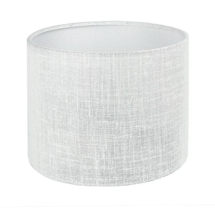 Abażur w kształcie walca, wykonany z tkaniny i metalu, gustownie ozdobi pomieszczenie i wpasuje się w większość aranżacji.