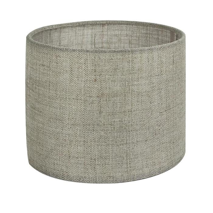 Abażur w kształcie walca, wykonany z tkaniny i metalu, gustownie ozdobi pomieszczenie i wpasuje się w większość aranżacji.