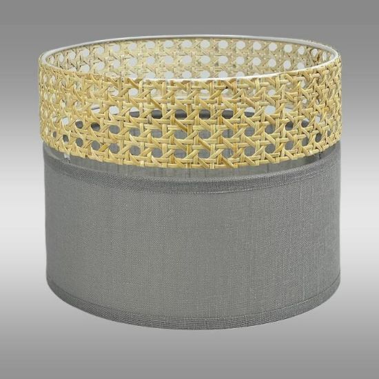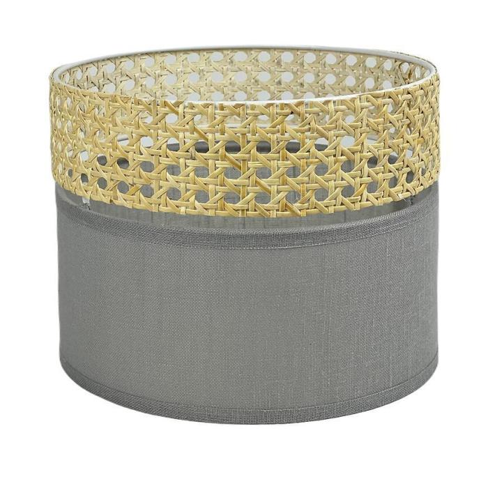 Abażur w kształcie walca, wykonany z tkaniny i metalu, gustownie ozdobi pomieszczenie i wpasuje się w większość aranżacji.