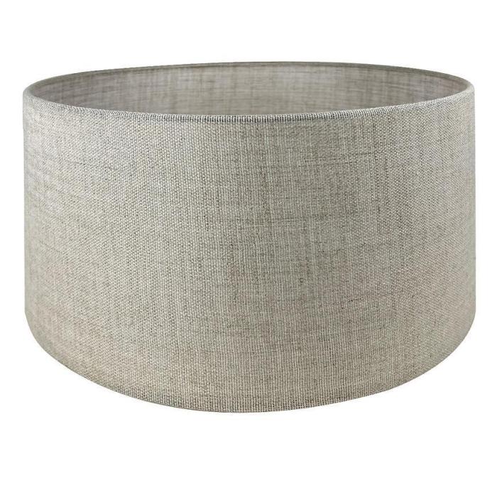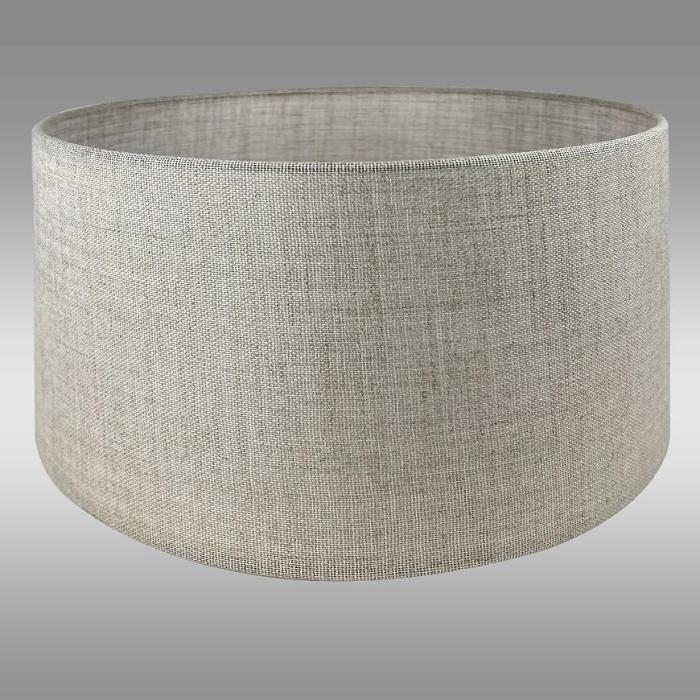 Abażur w kształcie walca, wykonany z tkaniny i metalu, gustownie ozdobi pomieszczenie i wpasuje się w większość aranżacji.