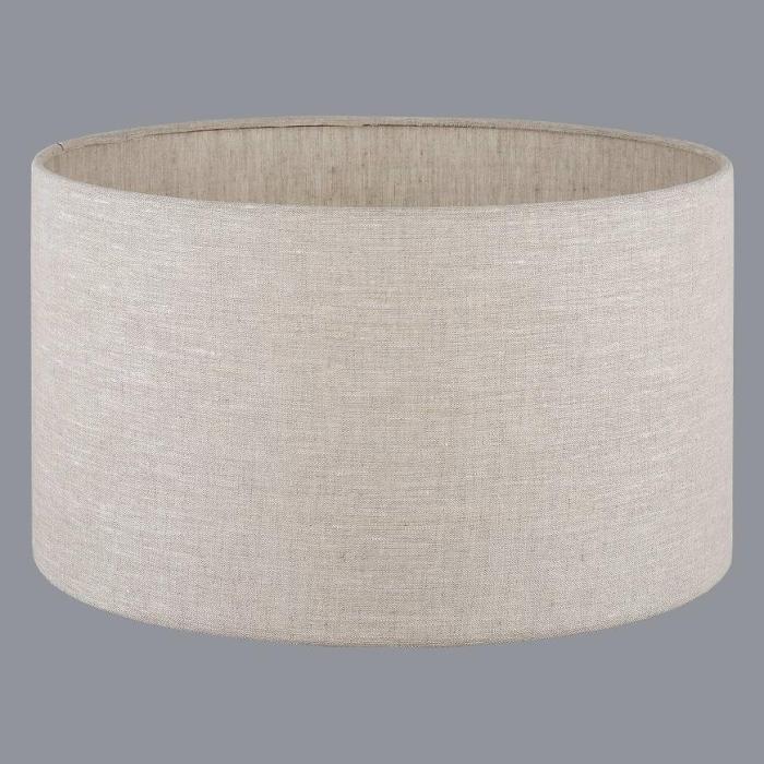 Abażur w kształcie walca, wykonany z tkaniny i metalu, gustownie ozdobi pomieszczenie i wpasuje się w większość aranżacji.