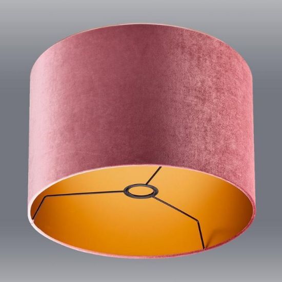 Abażur w kształcie walca, wykonany z tkaniny welurowej, gustownie ozdobi pomieszczenie i wpasuje się w większość aranżacji.