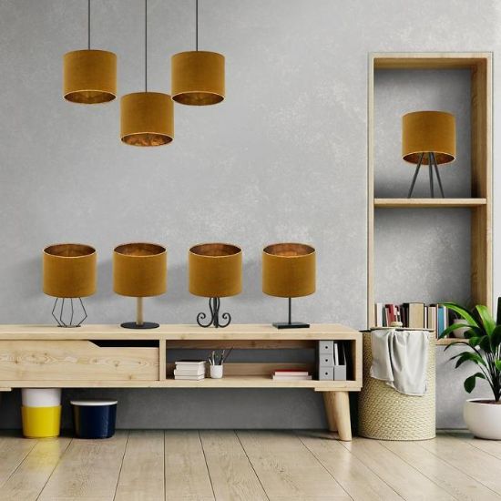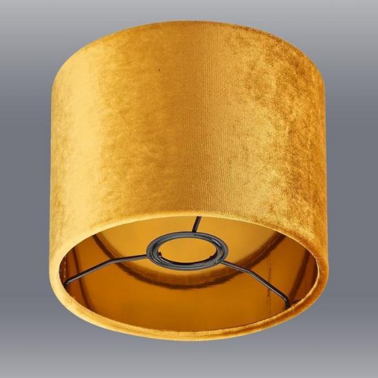 Abażur w kształcie walca, wykonany z tkaniny welurowej, gustownie ozdobi pomieszczenie i wpasuje się w większość aranżacji.