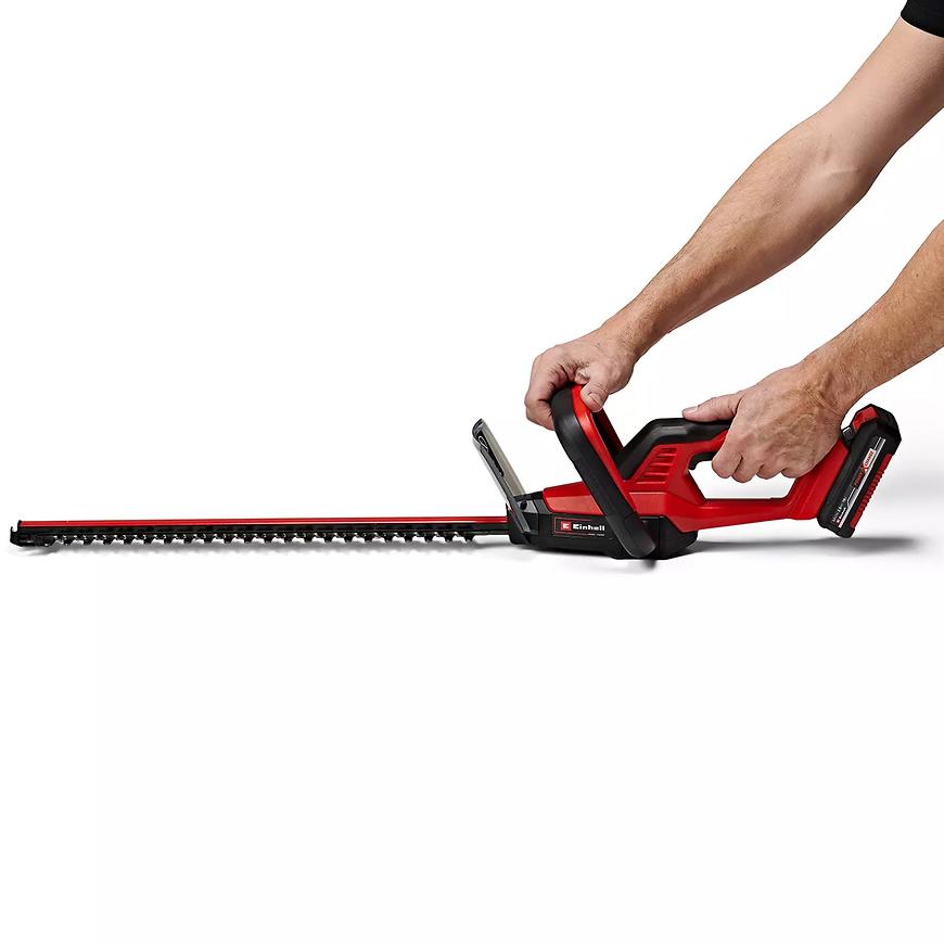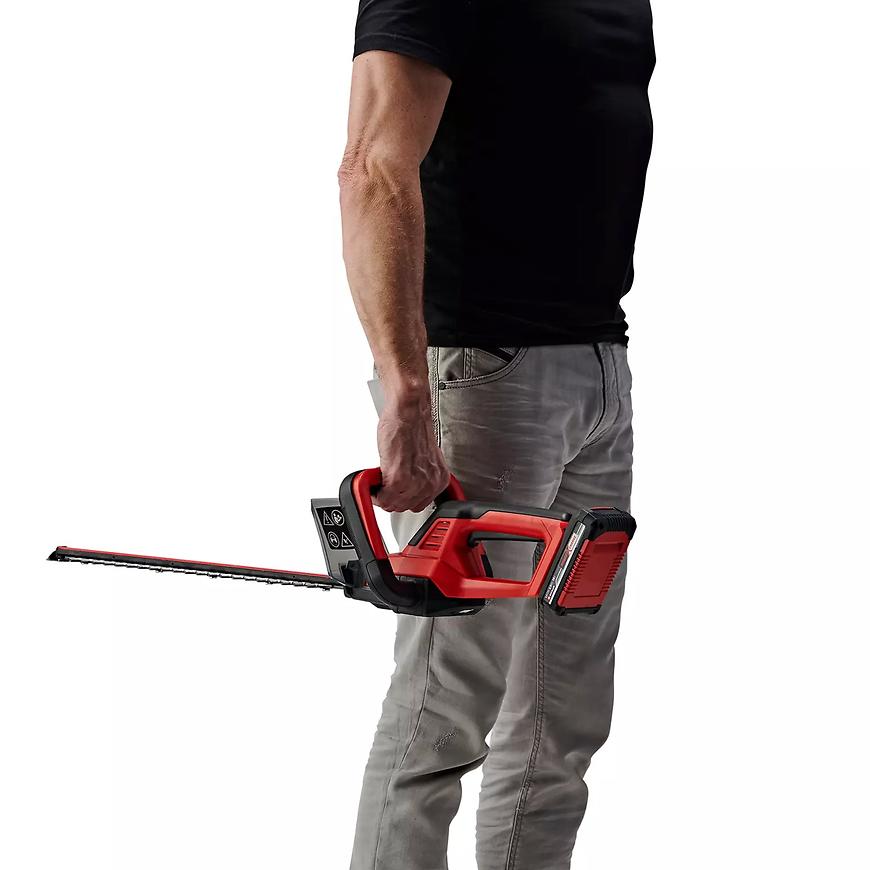 Zasilanie akumulatorowe – pełna swoboda ruchu bez plączących się kabli, idealna do przycinania żywopłotów w trudno dostępnych miejscach.