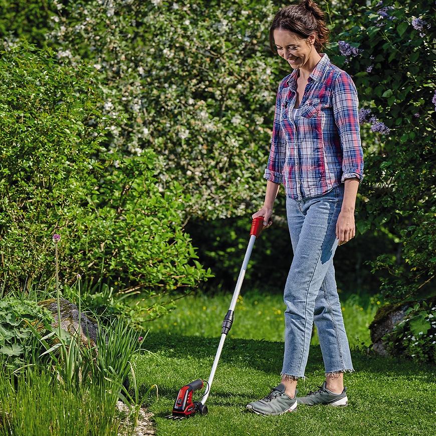 Akumulatorowe nożyce do trawy i krzewów Einhell GC-CG 7,2 Li - Solo to niezawodne, kompaktowe narzędzie, które ułatwi pielęgnację trawnika, formowanie krzewów oraz przycinanie żywopłotów. Dzięki niskiej wadze, cichej pracy i wygodnemu, gumowanemu uchwytowi typu Softgrip, doskonale sprawdzą się zarówno w przydomowych ogródkach, jak i na działkach.