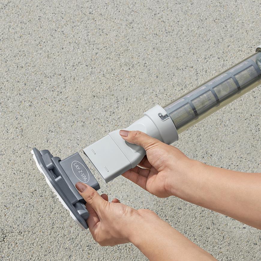 Obrotowa głowica ssąca odkurzacza jest wyposażona w koła i szczotki, które skutecznie docierają do trudno dostępnych miejsc, takich jak narożniki, zapewniając kompleksowe oczyszczenie. Zbierane zanieczyszczenia są bezpiecznie przechowywane w łatwo opróżnianej komorze ze stali nierdzewnej, a wciśnięcie jednego guzika sprawia, że proces czyszczenia staje się niezwykle prosty. Dzięki odkurzaczowi basenowemu Lay-Z-Spa® korzystanie z Twojego spa staje się jeszcze bardziej relaksujące, gdy woda jest czysta i klarowna.