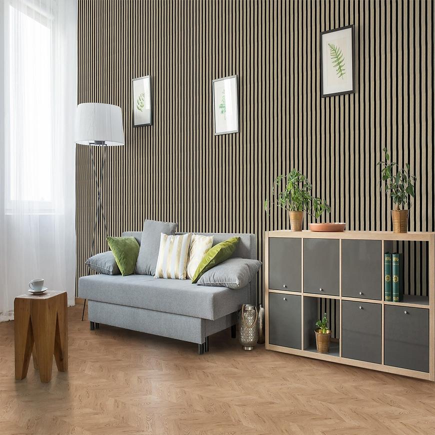 Akustyczne lamele są niezwykle łatwe w montażu – wystarczy uniwersalny klej montażowy. Dzięki możliwości docięcia paneli, ich dopasowanie do dowolnej powierzchni jest szybkie i wygodne. Standardowy rozmiar panela to 30 cm szerokości i 265 cm wysokości, z filcem o grubości 8 mm i lamelami o grubości 12 mm.