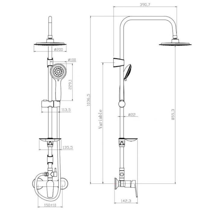 Głowica natrysku: 200 mm