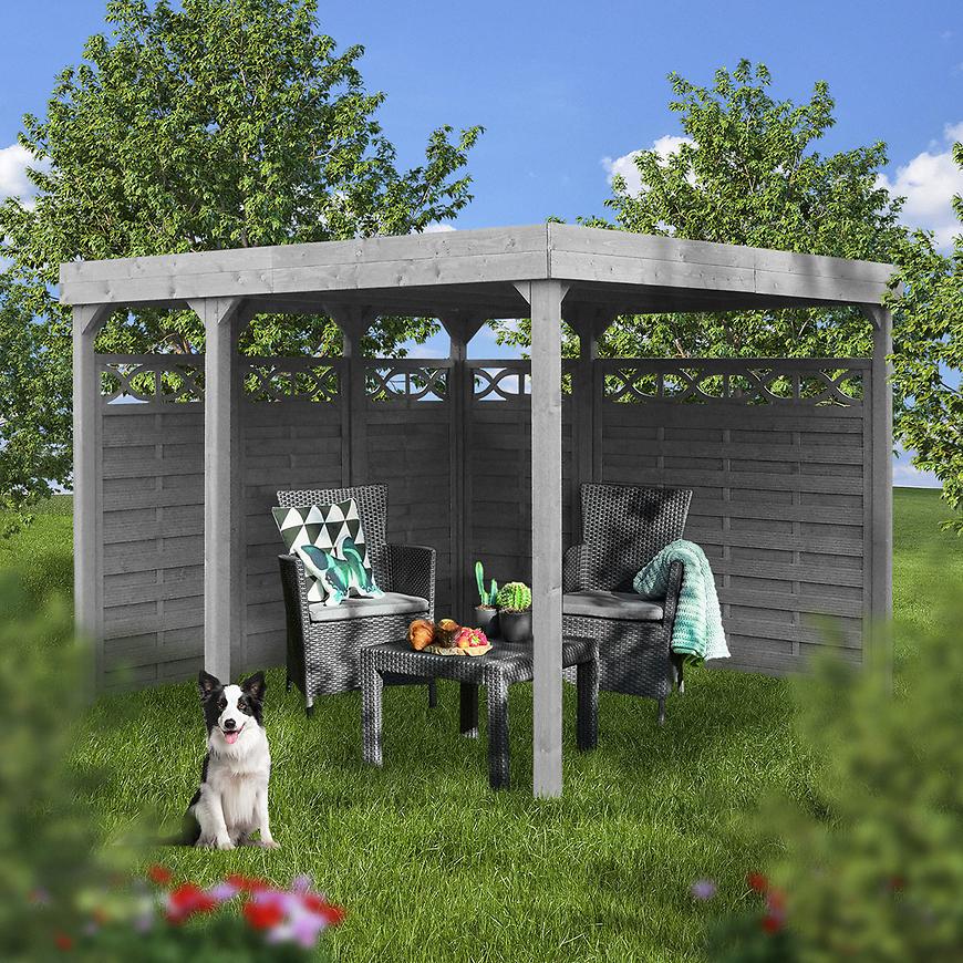 Altana NOVA została zaprojektowana z myślą o maksymalnej wygodzie użytkownika – jej przemyślany rozstaw nóg umożliwia dopasowanie paneli płotowych według indywidualnych potrzeb, tworząc tym samym przestrzeń dopasowaną do stylu ogrodu i oczekiwań użytkownika. Panele płotowe nie są częścią zestawu, co daje swobodę w wyborze materiałów i wyglądu ścianek.