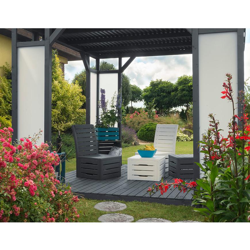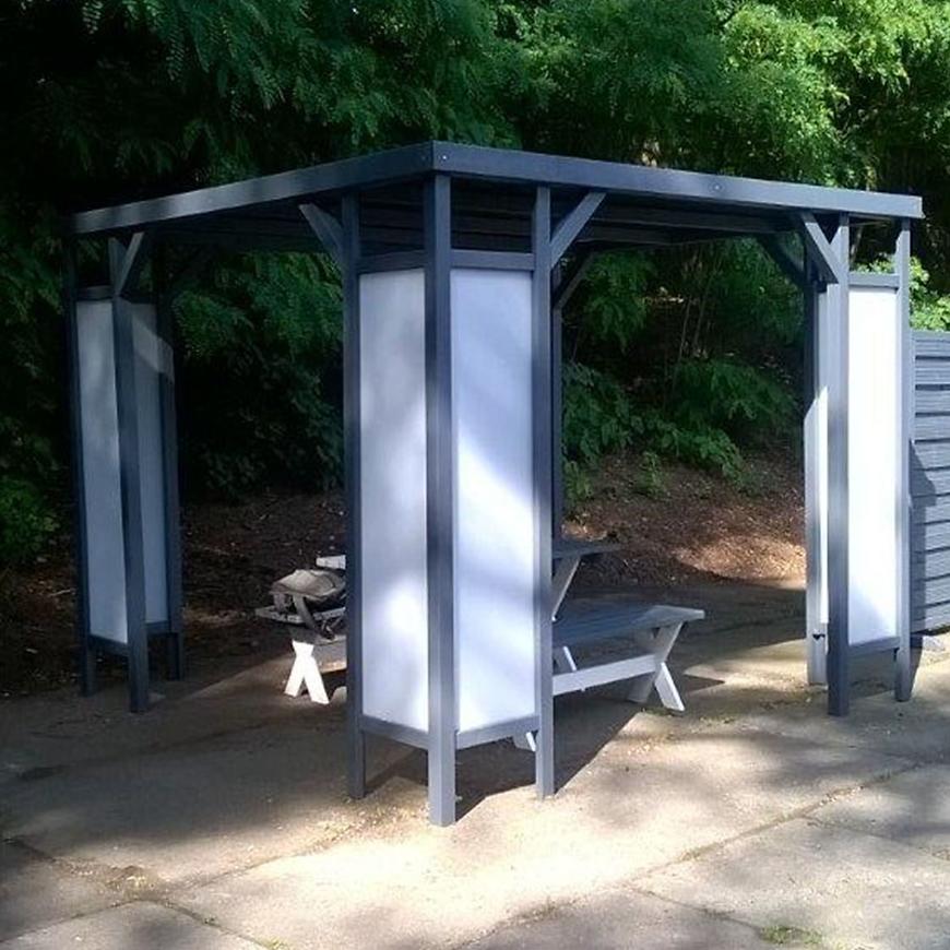 Dzięki wymiarom 2,89 × 2,89 × 2,31 m altana oferuje przestrzeń idealną do relaksu, spotkań z rodziną czy przyjaciółmi. Ozdobne narożne wstawki z mlecznej plexi dodają konstrukcji lekkości i nowoczesnego stylu, a pokrycie z tworzywa zapewnia skuteczną ochronę przed słońcem i deszczem, umożliwiając korzystanie z altany niezależnie od pogody.