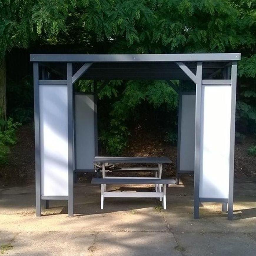 Altana Vitrum dostarczana jest w zestawie z wszystkimi elementami niezbędnymi do montażu, co pozwala na szybkie i łatwe złożenie konstrukcji we własnym zakresie. Ławka widoczna na zdjęciu nie jest częścią zestawu.