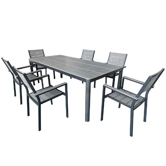 Materiał siedziska - polywood, imitujący wygląd drewna, nadaje krzesłu elegancji i naturalnego uroku, jednocześnie zachowując trwałość i łatwość w utrzymaniu. Odporność na korozję, zarysowania i promieniowanie UV sprawiają, że krzesło utrzymuje swoją świeżość i estetyczny wygląd przez wiele sezonów.