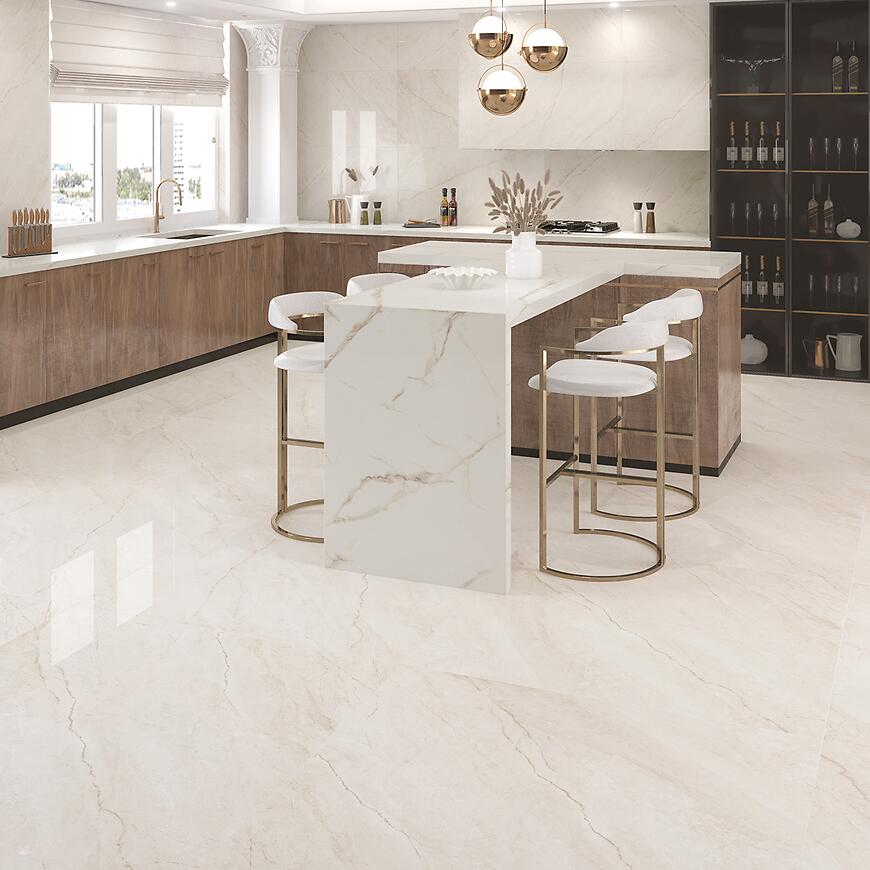 Polerowana powierzchnia podkreśla naturalny wygląd marmuru, a beżowy kolor wprowadza przytulność i optycznie powiększa przestrzeń. Płytka pasuje do różnorodnych aranżacji – od nowoczesnych po klasyczne – i harmonijnie komponuje się z drewnem, metalem i neutralnymi barwami.