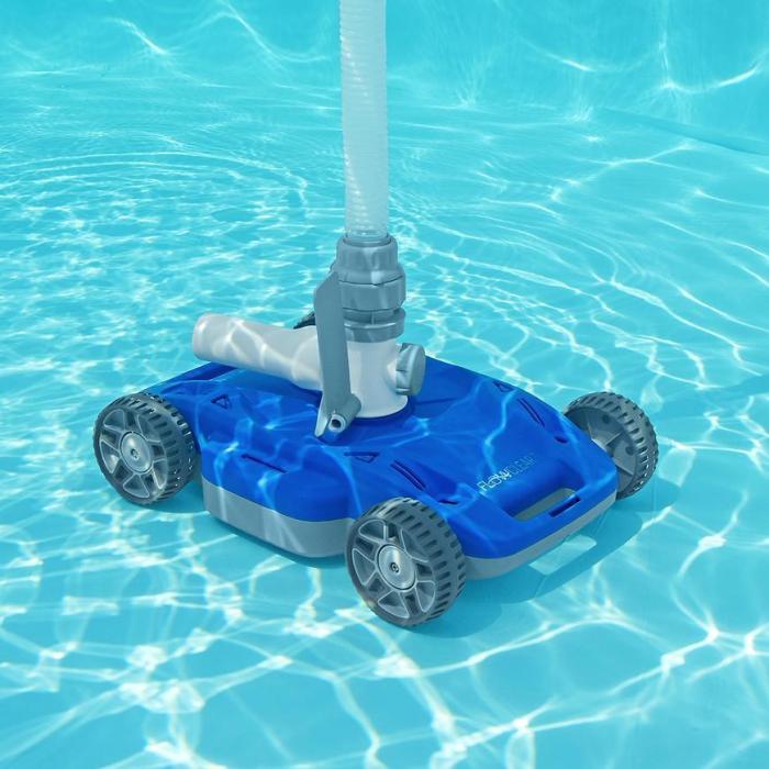 Automatyczny odkurzacz do basenów AQUADRIFT skutecznie usuwa brud, zanieczyszczenia liście i piasek wystarczy podłączyć wąż odkurzacza do pompy filtrującej, umieść go w basenie, a on zacznie działać. Wyposażony w 3 ustawienia regulacji, ale można również ręcznie zmienić kierunek i kąt kół.
