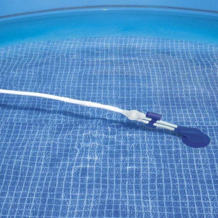 Pływak i waga odkurzacza zapewniają jego optymalną zwrotność. Zalecany jest do basenów o miękkich ścianach, o rozmiarach od 4,57 m/15 stóp do 4,87m/16 stóp. Odkurzacz zawiera przewody o łącznej długości 6,10 m/20 stóp,