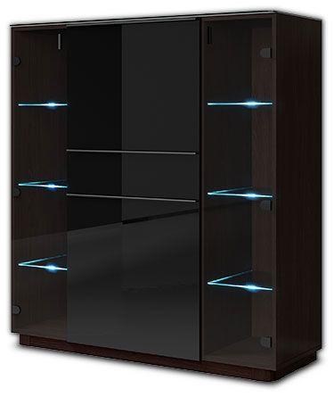 Barek Togo Typ 46 to mebel, który umożliwia przechowywanie różnorodnych przedmiotów w wyjątkowo elegancki sposób, a także zaprezentowanie tych o charakterze ozdobnym lub dekoracyjnym. Całość kompozycji jest utrzymana w zdecydowanie ciemnej kolorystyce. Drewno wenge oraz czarne szkło, którym pokryto wieniec górny oraz front, tworzą niespotykane dotąd wzornictwo. W komplecie z meblem znajduje się oświetlenie LED, które sprawia, że konstrukcja prezentuje się jeszcze bardziej nowocześnie i oryginalnie. Główny budulec barku Togo typ 46 stanowi płyta laminowana. Jego zaletą jest również wyposażenie w system cichego domyku oraz możliwość samodzielnego montażu w warunkach domowych. Dzięki wysokiej jakości komponentów mebel ten będzie użyteczny i atrakcyjny wzorniczo przez wiele lat.