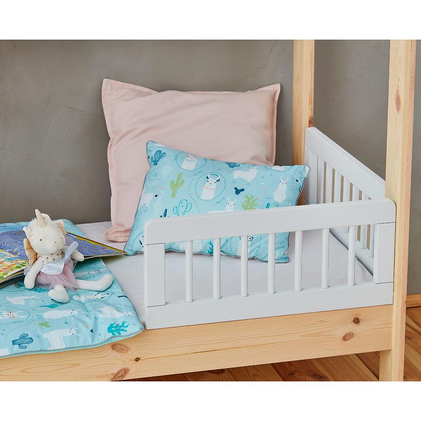 Barierka ma długość 58,6 cm, co sprawia, że idealnie pasuje do łóżek o wymiarze 160x70 cm, tworząc solidną osłonę na jednej długości łóżka. Kolor barierki nie tylko nadaje jej uniwersalnego charakteru, ale także doskonale komponuje się z różnymi kolorystykami i wzorami wnętrz dziecięcych.