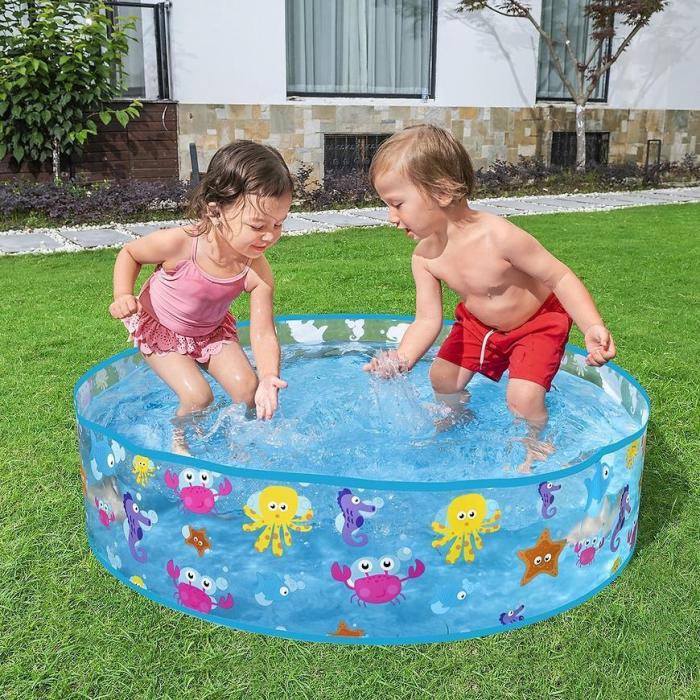 Basen Bestway® Sparkling Sea Fill-N-Fun to idealny pomysł na letnie orzeźwienie czy zabawę. Basen jest przystosowany do codziennego użytku, odporny na przebicia, ściany boczne są na stałe połączone z wytrzymałym, winylowym dnem. Basen z pewnością będzie cieszył i służył wiele sezonów.