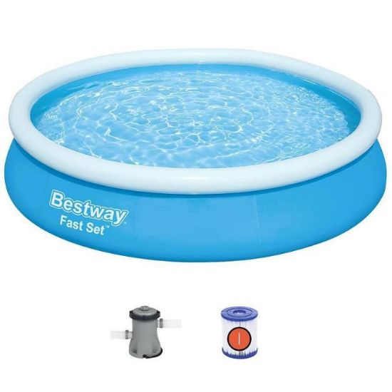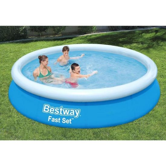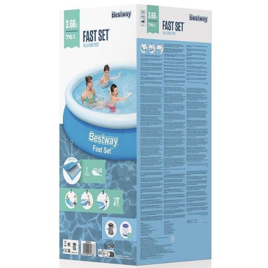 Bestway® Fast Set™ to idealny pomysł na letnie orzeźwienie czy zabawę. Basen jest przystosowany do codziennego użytku, odporny uszkodzenia dzięki potrójnej warstwie materiału z rdzeniem z siatki poliestrowej umieszczonym pomiędzy dwiema warstwami materiału PVC o dużej grubości.