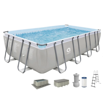 - W zestawie - basen, stelaż, drabinka, zestaw naprawczy, instrukcja, pompa filtrująca, mata pod basen, pokrywa