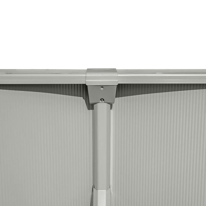 - Stalowa konstrukcja – ściany, rama i górna krawędź wykonane w 100% z ocynkowanej stali, co zapewnia odporność na korozję i czynniki atmosferyczne.