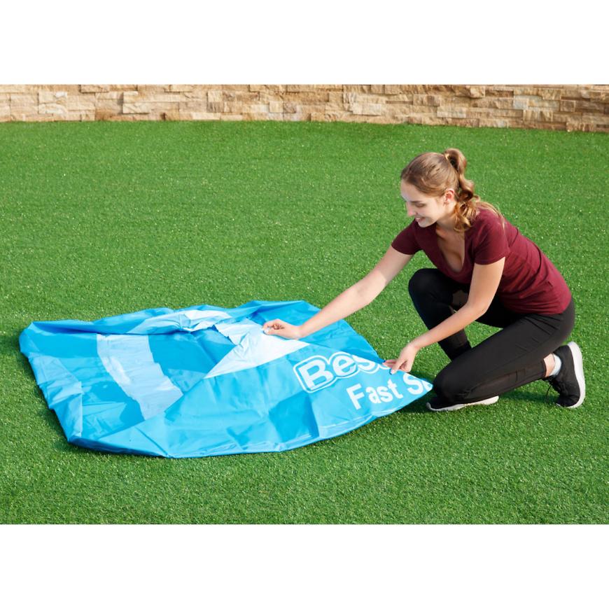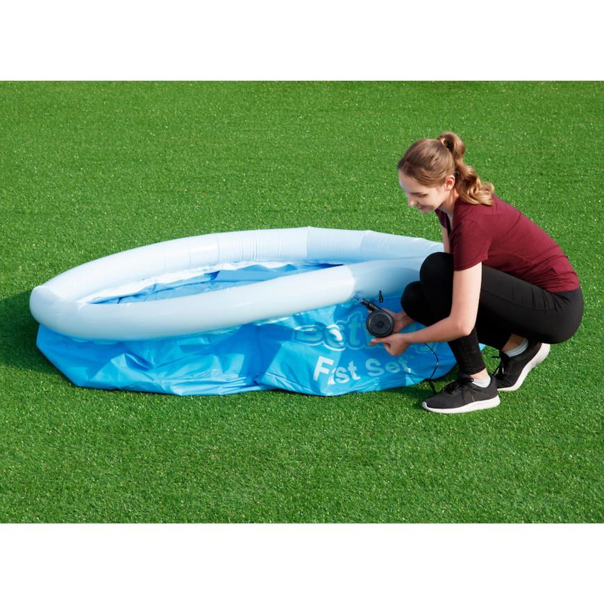 Jedną z największych zalet modelu Bestway Fast Set jest niezwykle prosty montaż. Wystarczy rozłożyć basen na równej, oczyszczonej powierzchni, napompować górny pierścień i napełnić wodą. Konstrukcja samoistnie unosi się pod naporem wody, tworząc stabilną i bezpieczną nieckę. Nie są potrzebne żadne narzędzia ani skomplikowane instrukcje – basen ogrodowy rozporowy jest gotowy do użytku w około 10 minut.