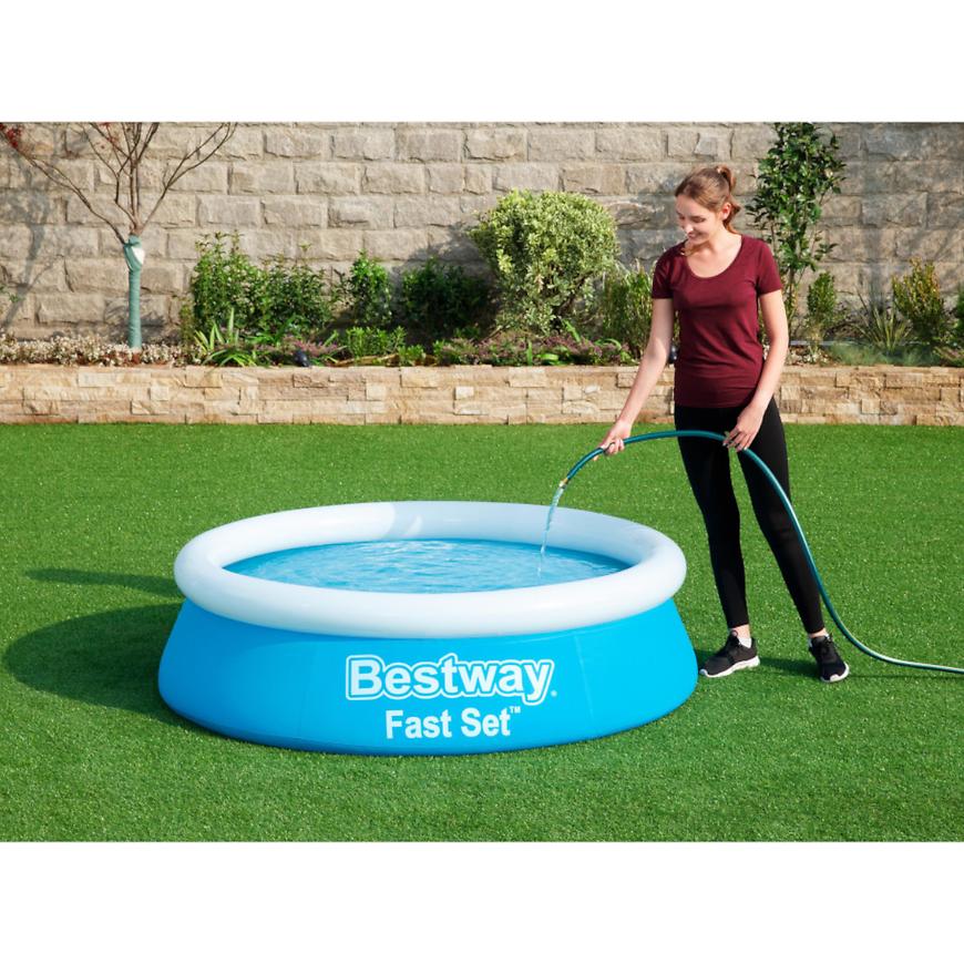 Basen rozporowy Bestway Fast Set™ o średnicy 183 cm i wysokości 51 cm to praktyczne rozwiązanie dla osób, które chcą szybko stworzyć przydomową strefę relaksu. Ten okrągły basen ogrodowy o maksymalnej pojemności 940 litrów (80% napełnienia) zapewnia wystarczająco dużo miejsca do ochłody w upalne dni, zarówno dla dzieci, jak i dorosłych. Dzięki wadze zaledwie 3 kg jest łatwy w przenoszeniu i przechowywaniu po zakończeniu sezonu.