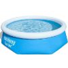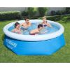 Basen Bestway® to idealny pomysł na letnie orzeźwienie czy zabawę. Łatwy montaż bez narzędzi w 10 minut. Wybierz równą powierzchnię, napompuj górny pierścień, a basen podniesie się, gdy będzie wypełniany wodą. Wbudowany zawór spustowy z kontrolą przepływu podłącza się do węża ogrodowego w celu odprowadzenia wody. Ściany boczne DuraPlus ™ odporne na przebicie i promieniowanie UV są odporne na ciężar, odkształcenia i ruchy.