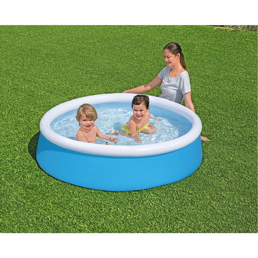 Basen rozporowy dla dzieci Bestway® My First Fast Set™ to idealne rozwiązanie dla najmłodszych, pragnących cieszyć się radością z kąpieli podczas letnich dni. Z łatwością i błyskawicznym tempem, ten okrągły basen o średnicy 152 cm i wysokości 38 cm stanie się ulubionym miejscem zabaw wodnych.