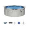 Zawartość: jeden basen, pompa z filtrem piaskowym, skimmer, drabina, osłona podłoża, przykrycie basenu, dozownik ChemConnect™, łatka naprawcza.