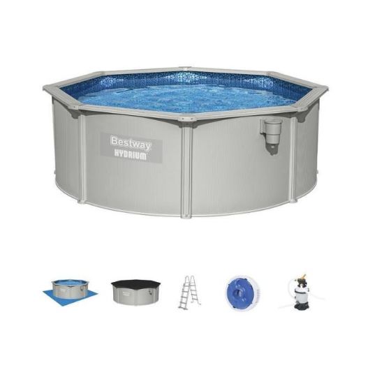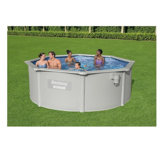 Basen Hydrium wykonany jest z odpornej na korozję stali galwanizowanej. Rama, ściany oraz górna półka wykonane w 100% ze stali, która została pokryta warstwą cynku, co zapobiega rdzy oraz uszkodzeniom spowodowanym przez czynniki atmosferyczne. Dodatkowo, niecka Prismatic Stone™ wzdłuż wewnętrznej strony basenu posiada powłokę odporną na promieniowanie UV, która zapobiega odbarwieniom lub pękaniu pod wpływem słońca.