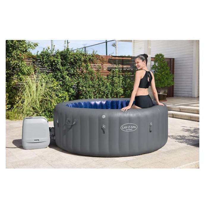 Lay-Z-Spa® Santorini HydroJet Pro™ to przenośne, praktyczne SPA, które pomieści maksymalnie 7 osób. W zestawie znajduje się 5 regulowanych poduszek, które zapewnią komfort użytkowania. Temperatura wody dochodzi do 40ºC (104ºF). Dla zapewnienia komfortu, basen posiada wewnętrzne siedziska.