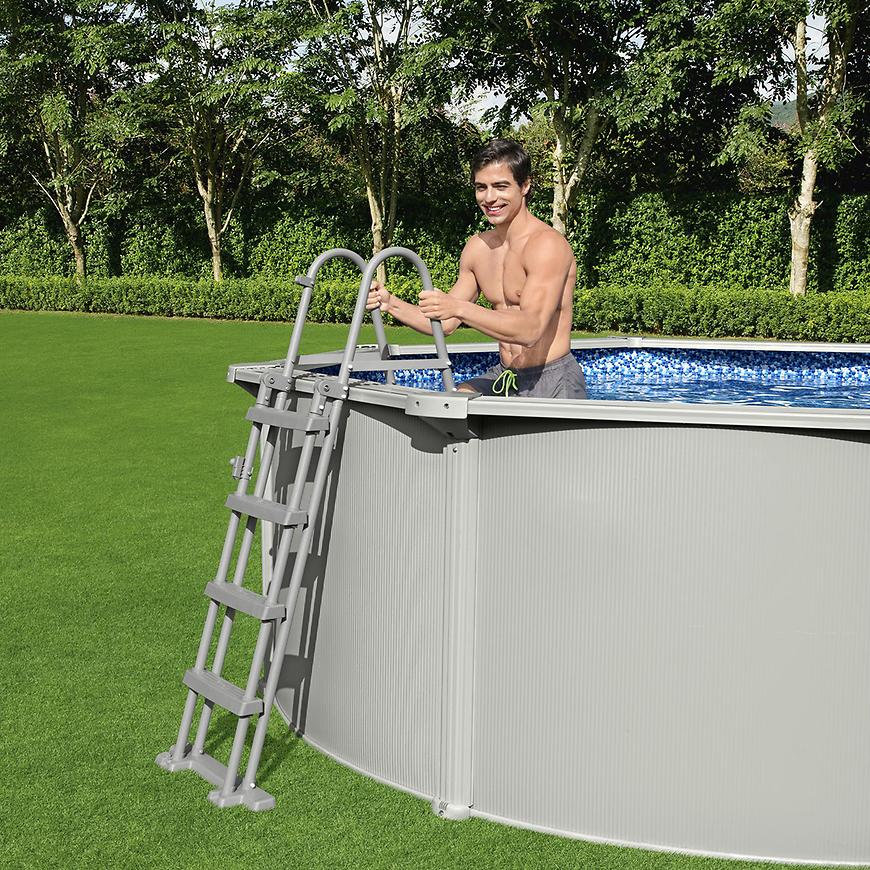 - Drabina Flip & Lock: Konstrukcja drabiny zapobiega niekontrolowanemu dostępowi do basenu, co jest idealne dla rodzin z małymi dziećmi.
