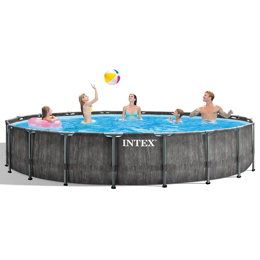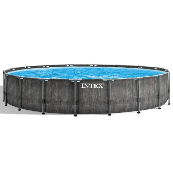 Basen stelażowy Greywood Prism Frame Premium 5.49 x 1.22 m to propozycja dla osób, które oczekują połączenia dużej przestrzeni kąpielowej, solidnej konstrukcji oraz estetycznego wyglądu. Okrągły basen naziemny z serii Prism wyróżnia się wyrafinowanym wzorem szarego drewna, który doskonale komponuje się z nowoczesnymi i klasycznymi aranżacjami ogrodowymi. Dzięki temu basen nie tylko pełni funkcję rekreacyjną, ale również estetycznie uzupełnia przestrzeń wokół domu.