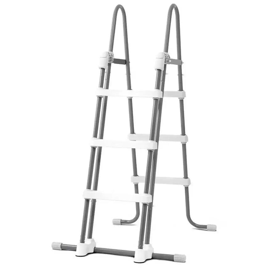 W komplecie znajduje się również drabinka bezpieczeństwa, która ułatwia wchodzenie i wychodzenie z basenu. Jest to szczególnie istotne przy wysokości 122 cm, zapewniając wygodę oraz bezpieczeństwo zarówno dzieciom, jak i dorosłym użytkownikom.