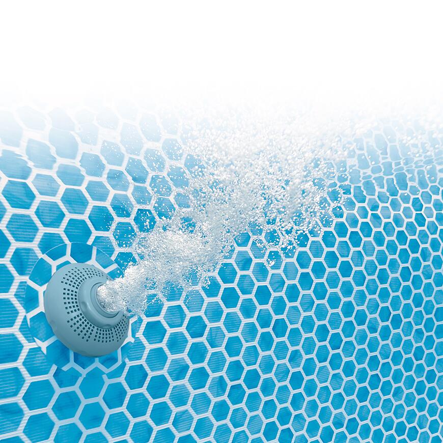 Solidna rama w połączeniu z wytrzymałą niecką sprawia, że basen stelażowy może być użytkowany przez wiele sezonów, zachowując swoje właściwości techniczne i estetyczne.