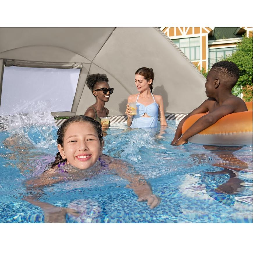 Zestaw z basenem naziemnym zawiera pompę filtrującą, drabinkę, pokrywę na basen i praktyczny baldachim, który zapewni Ci cień i ochłodę podczas upalnych dni. Basen ten jest nie tylko łatwy do rozstawienia, ale także składania, umożliwiając wygodne przechowywanie poza sezonem. Bez konieczności użycia narzędzi, wbudowany wąż z zaworem z kontrolą przepływu ułatwia szybkie i łatwe opróżnianie basenu. Wejdź do świata letniej przyjemności i zrelaksuj się w zaciszu własnego podwórka, ciesząc się wyjątkowym basenem, który łączy w sobie solidność, funkcjonalność i nowoczesny design.
