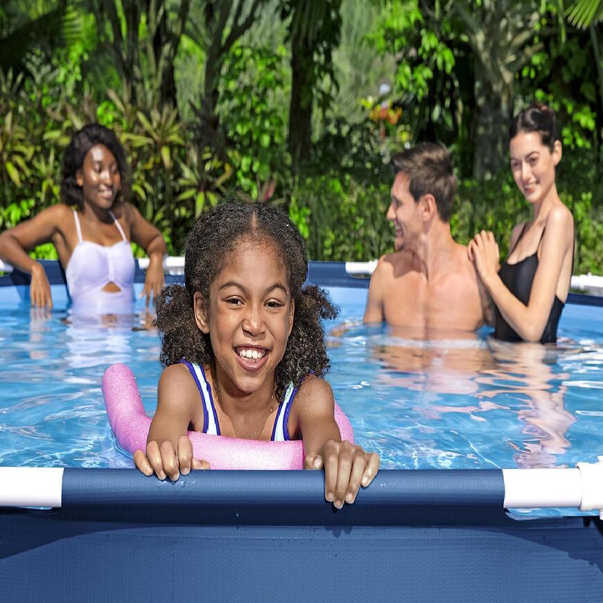 Basen Steel Pro MAX został zaprojektowany z myślą o trwałości i bezpieczeństwie użytkowania. Trzywarstwowa wyściółka Tritech enhanced jest wzmocniona, co zwiększa odporność na przebicia, zapewnia długowieczność oraz stabilność konstrukcji. Stalowa rama z połączeniami FrameLink zapobiega kontaktowi metalu z metalem, minimalizując ryzyko korozji i rdzewienia, dzięki czemu basen pozostaje wytrzymały przez wiele sezonów.