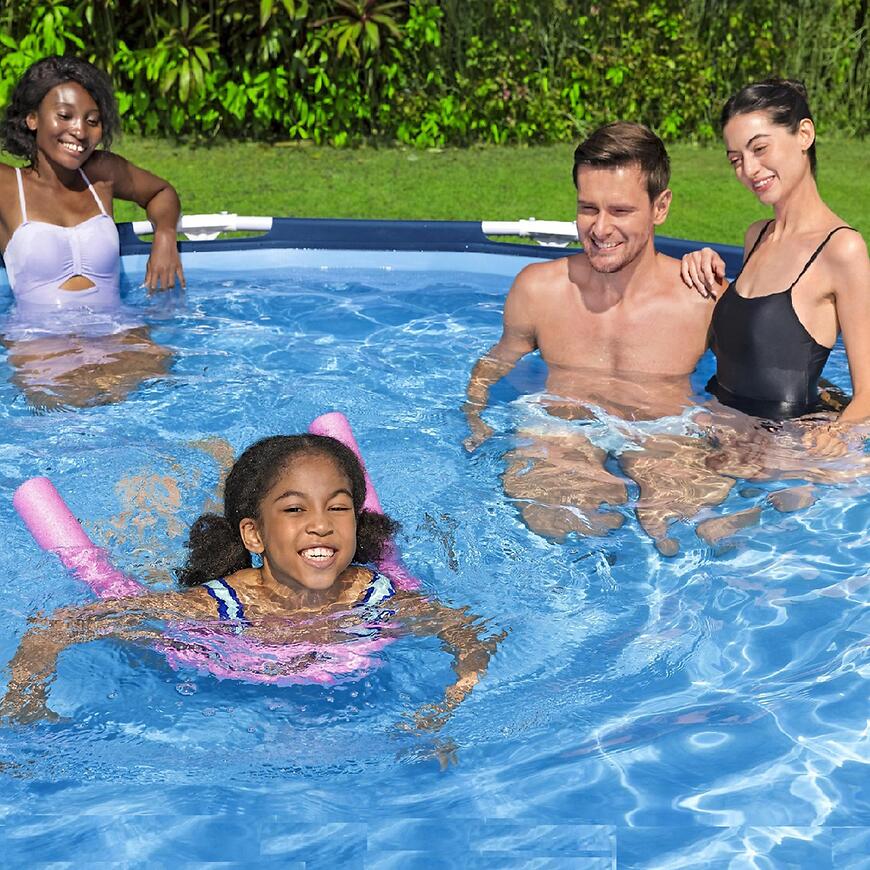 Basen stelażowy Bestway Steel Pro MAX 56681 o wymiarach 3,66 m x 76 cm to doskonałe rozwiązanie dla rodzin szukających wygodnego i przestronnego basenu ogrodowego. Jego pojemność wynosi aż 6 473 litrów wody, co pozwala na komfortowe korzystanie dla kilku osób jednocześnie. Okrągły kształt basenu zapewnia swobodę ruchu w wodzie, a estetyczny wygląd sprawia, że basen doskonale komponuje się w każdym ogrodzie, na tarasie lub działce rekreacyjnej.