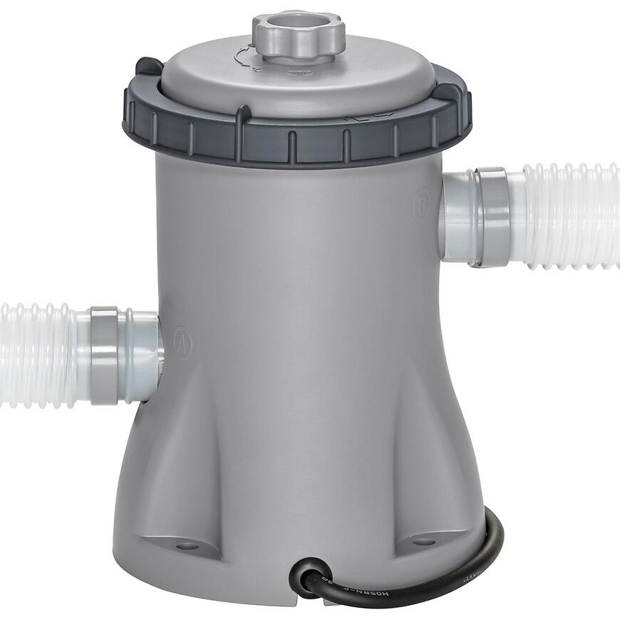 W zestawie znajduje się także wydajna pompa filtrująca o przepływie 1 249 litrów na godzinę oraz wkład filtracyjny typu I, co zapewnia czystą i bezpieczną wodę w basenie. Natężenie przepływu w zintegrowanym systemie basenowym wynosi 1 060 litrów na godzinę (280 gal./h; 1 m³/h), gwarantując skuteczną filtrację i utrzymanie wody w doskonałej jakości. Dodatkowo w zestawie znajduje się łatka naprawcza, która pozwala na szybkie usunięcie drobnych uszkodzeń.