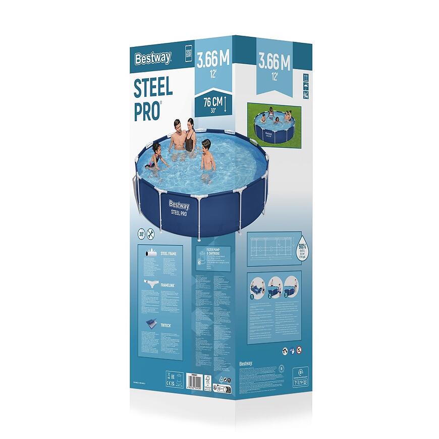 Basen stelażowy Bestway Steel Pro MAX 3,66 x 0,76 m łączy przestronność, trwałość i łatwość użytkowania, oferując komfortową zabawę i relaks dla całej rodziny. Solidna konstrukcja, wydajna pompa filtrująca oraz szybki montaż sprawiają, że jest to idealny wybór na lato, zapewniający przyjemność i bezpieczeństwo w ogrodzie.