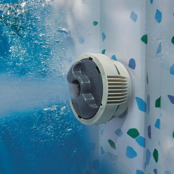 Jacuzzi ogrodowe z hydromasażem to idealny pomysł na letnie orzeźwienie czy zabawę. Basen jest przystosowany do codziennego użytku i można używać go cały rok. Spa wyposażone w nowoczesne nadmuchiwane ściany z opatentowanego i przetestowanego materiału Tritech z system AirJet ™. Aż 140 dysz powietrznych można ustawić w dolnej części spa i zapewnić sobie szybki kojący masaż.