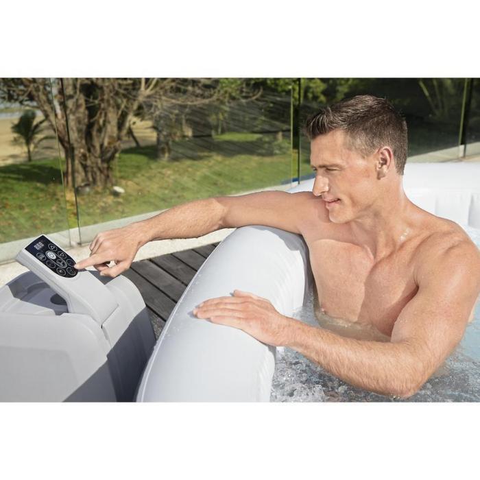 - Cyfrowy panel sterowania i pompa spa ze zintegrowanym systemem filtracji zawiera uchwyty na kubki i jest dostępny z wnętrza spa