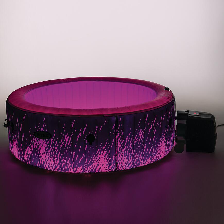Przekształć swoje podwórko lub taras w prywatną strefę relaksu dzięki basenowi z hydromasażem PureSpa™ Glow Deluxe Bubble. Ten okrągły, 4-osobowy basen o średnicy 196 cm i wysokości 71 cm zapewnia przestrzeń do komfortowego odpoczynku w gronie rodziny lub przyjaciół. Dzięki pojemności aż 795 litrów wody, każda kąpiel staje się luksusowym doświadczeniem.