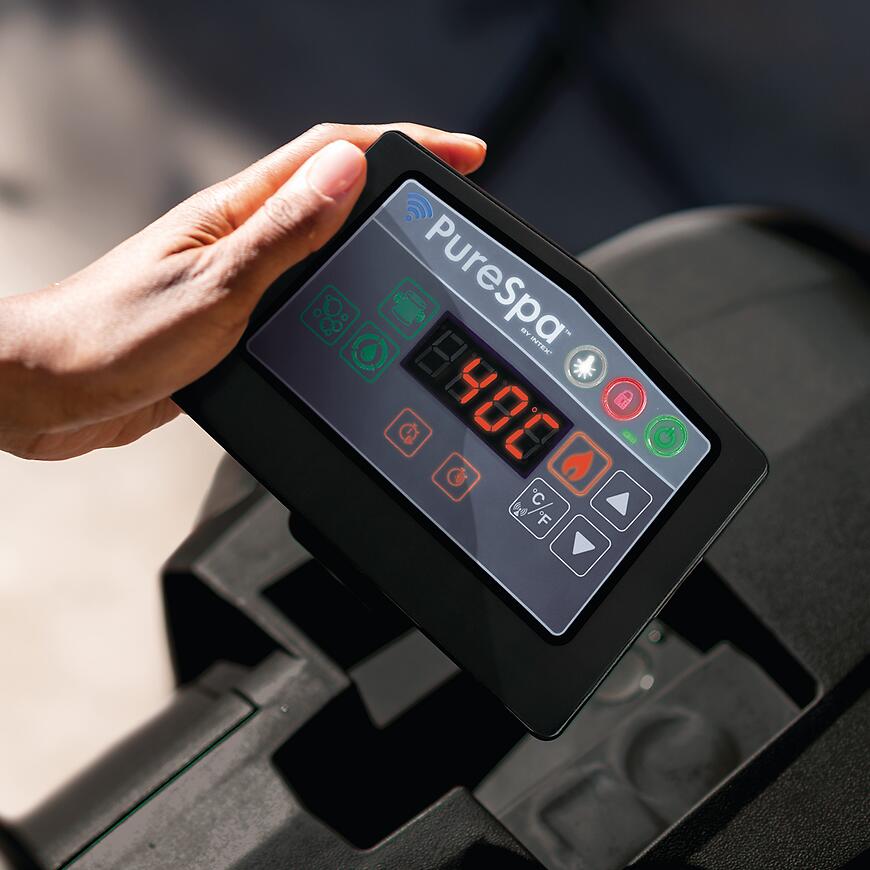 Glow Deluxe Bubble oferuje system delikatnego hydromasażu, który łagodzi napięcie mięśni i pozwala się w pełni zrelaksować. Panel sterowania umożliwia regulację kolorowego oświetlenia LED, tworząc nastrojową atmosferę podczas wieczornych kąpieli. Dodatkowo możesz sterować wanną z poziomu aplikacji mobilnej, co pozwala w pełni kontrolować temperaturę wody i tryby masażu.