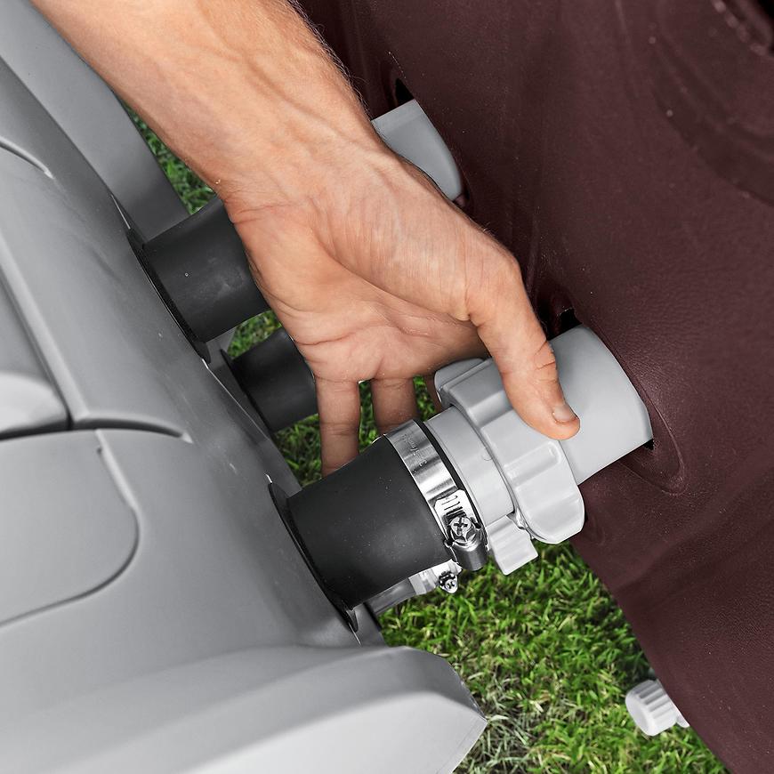 Hydrodynamiczny system masażu łączy 10 dysz HydroJet™ z 180 dyszami bąbelkowymi, tworząc niezrównane doznania relaksacyjne. Dzięki możliwości podgrzania wody do 40℃ oraz systemowi Freeze Shield®, basen jest gotowy do użytku przez cały rok.