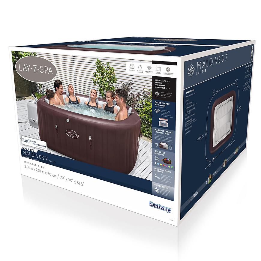 Basen Maldives 6001U wyposażono w wbudowany moduł Wi-Fi, umożliwiający sterowanie za pomocą aplikacji mobilnej. Światła LED ColorJet zmieniające kolory tworzą wyjątkowy nastrój, a dozownik ChemConnect® zapewnia czystość wody i idealny poziom chloru.