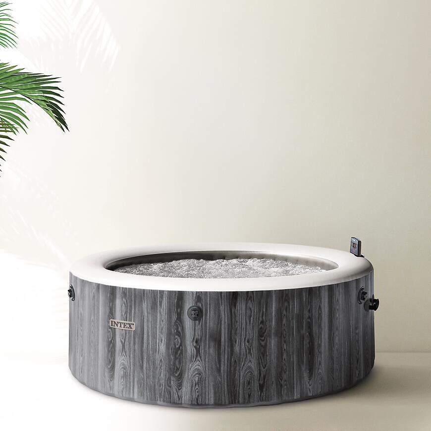 Basen z hydromasażem Spa 2.16x0.71 m Greywood Bubble Deluxe S2 28442NP to propozycja dla osób, które chcą stworzyć rozbudowaną strefę relaksu w ogrodzie, na tarasie lub w przydomowej przestrzeni wypoczynkowej. Okrągła forma oraz realistyczne wykończenie w kolorystyce Greywood sprawiają, że jacuzzi przypomina naturalne drewno i dobrze komponuje się zarówno z nowoczesną architekturą, jak i zielonym otoczeniem.