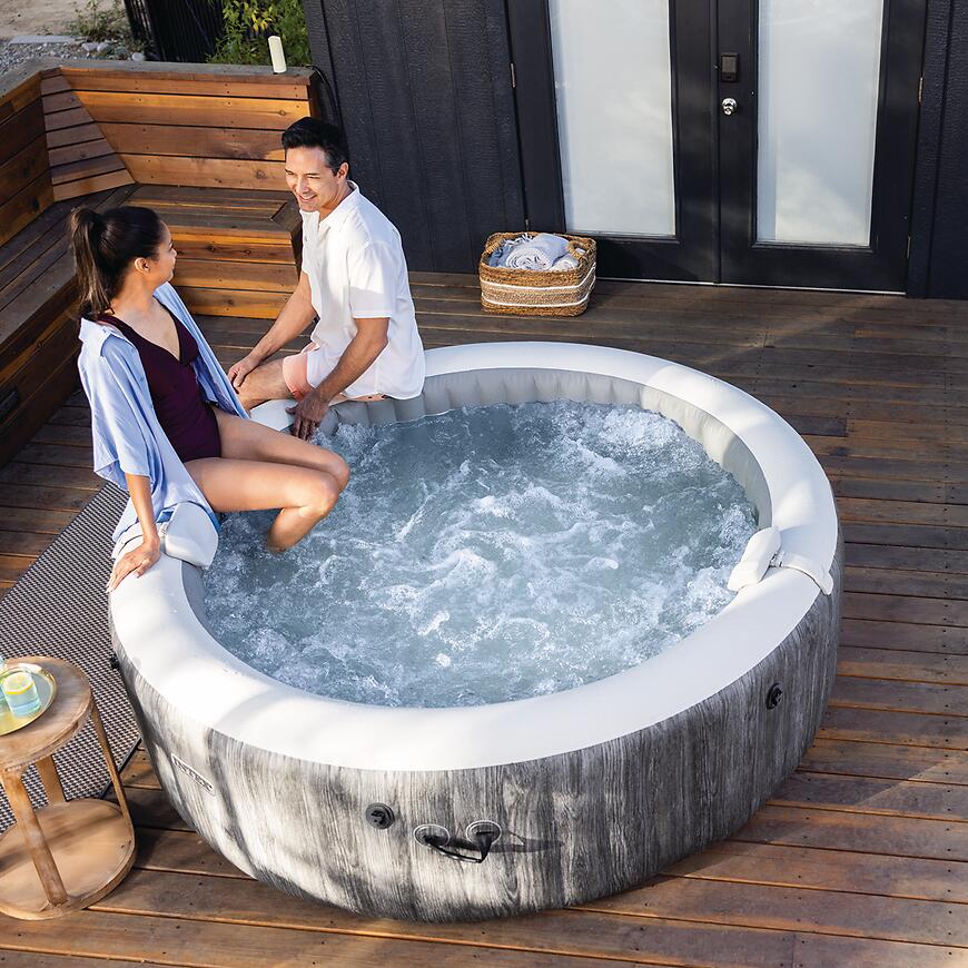 Dmuchane jacuzzi Greywood Bubble Deluxe przeznaczone jest dla sześciu osób, co czyni je idealnym wyborem dla rodzin oraz osób, które lubią dzielić relaks z bliskimi. Wbudowany system strumieni bąbelkowych zapewnia równomierny, kojący masaż na całej powierzchni wanny, wspierając odprężenie mięśni i poprawę samopoczucia.